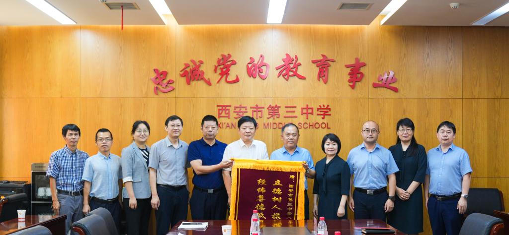 在西安市第三中学,校党委副书记、校长王海燕,副校长朱永民一行与三中校领导班子参观了三中校园并进行座谈。三中校长刘俊博对我校校长一行的来访表示热烈欢迎,介绍了学校的办学历史和办学基本情况、特色教育教学活动、校园文化建设等情况。校长王海燕充分肯定近年来三中取得的办学成就,并对解决我校教职工子女入学问题表示感谢。他指出学校党委高度重视教职工子女入学问题,解决好中小学入学问题是吸引人才、留住人才、用好人才的关键环节,也是提升师资队伍建设的坚实保障;希望三中能持续支持我校教职工子女就近入学,为我校教职工子女入学解除后顾之忧,潜心开展教学科研工作,同时,表示将依托学科专业优势和师资优势,加强资源共享,拓展在科技活动、心理健康教育、思政教育等方面的协作,为三中科学教育和文化活动提供支持和保障。