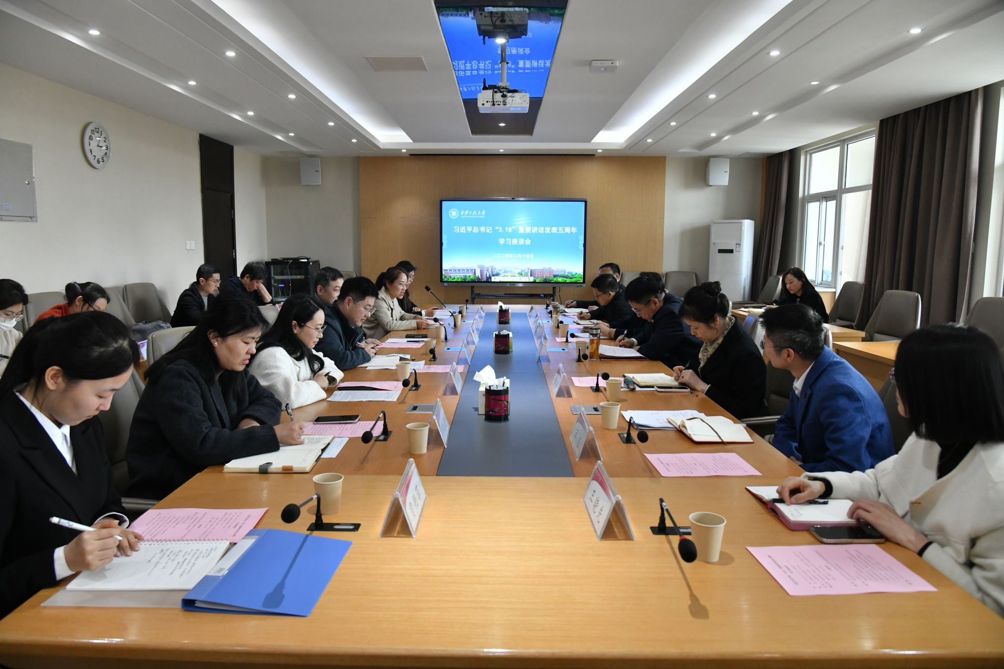 值习近平总书记在学校思政课教师座谈会发表重要讲话五周年之际,3月14日下午,我校在临潼校区行政楼第三会议室召开习近平总书记“3.18”重要讲话发表五周年学习座谈会。校党委副书记井浩主持会议并讲话,党委宣传部、教务处、马克思主义学院、党委学工部、党委研工部、党委教师工作部、校团委等单位负责人,部分教师、辅导员、学生代表参会。