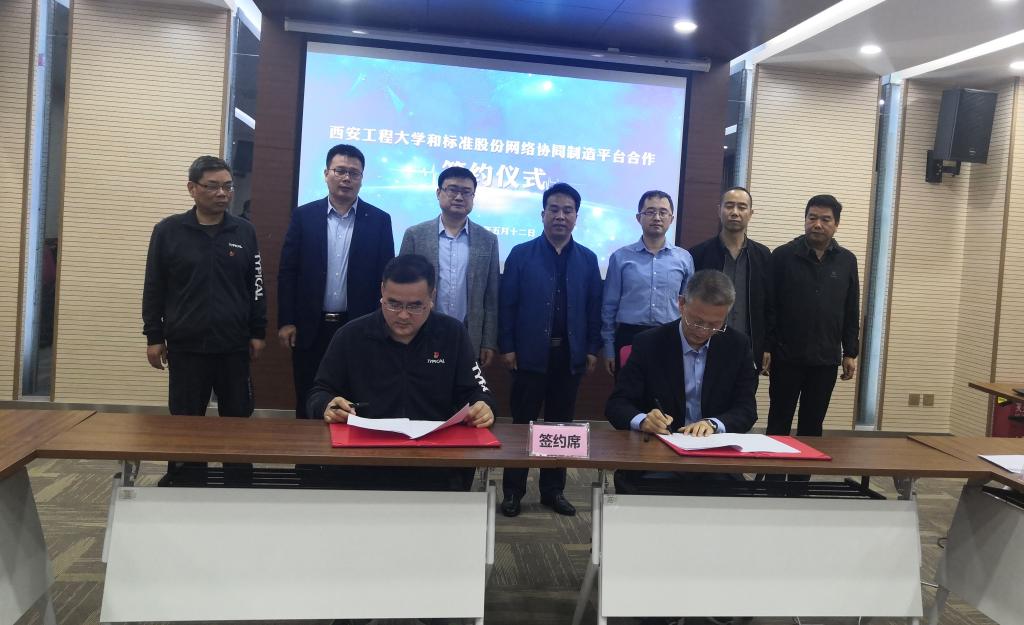 郭可义在仪式上介绍了学校今年来的成果转化情况,并就专利转让、校企合作政策做了介绍,他表示学校近年来积极鼓励教师走出去,加强与企业合作,同时对机电工程学院与西安标准工业股份有限公司的合作表示祝贺,科技成果转化中心会积极做好相关服务工作,助力更多的好的成果转化应用到企业中去。张守京介绍了“缝纫产业网络协同制造平台研发”情况,从设备运行状态监测、智能化管控、物联网远程运维等方面进行详细介绍,张副院长强调该平台的研发为企业快速柔性响应市场需求,加快科技成果转化树立了风向标。西安标准工业股份有限公司总监朱强就企业在物联网、人工智能方面及标准股份智云生产管理系统等做了详细介绍,就传统制造产业向工业智能服务转型的发展模式进行了讲解。