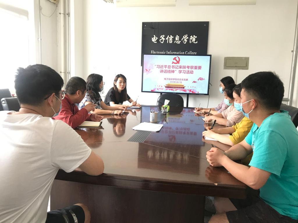 2020年5月27日,电信学院综合党支部在临潼校区学院楼414会议室组织党员学习“习近平总书记来陕考察重要讲话精神”。