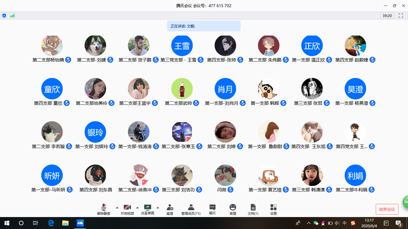 2020年6月4日下午,理学院在线上组织召开2017级学生党员就业推进会,全体辅导员和2017级全体党员参加,院学工办主任文毅主持。