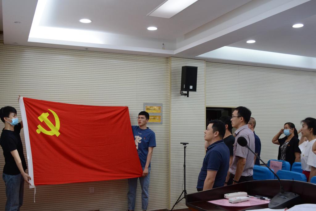 随后,举行了新党员入党宣誓和老党员重温入党誓词仪式,现场40余名新老党员和线上60余名新党员面向党旗、举起右手庄严宣誓。