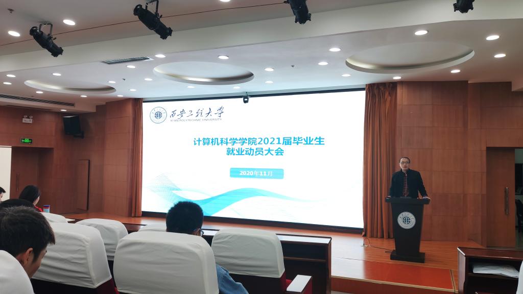 11月5日,计算机科学学院在临潼校区图书馆一楼报告厅召开了2021届毕业生就业动员会。招生就业工作处学生就业创业指导服务中心主任刘佳、学院党委副书记周波、就业辅导员朱瑾、2017级辅导员张鑫及毕业生参加了会议。
