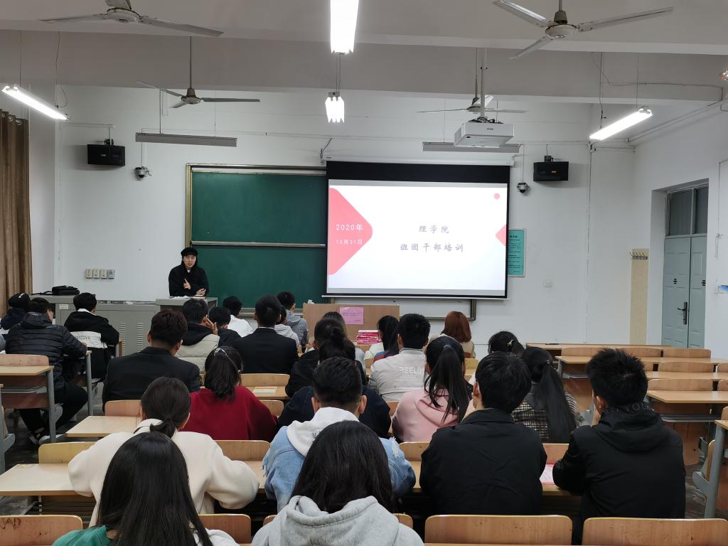 为了更好地引导2020级新生适应大学生活,营造良好的学习氛围,构建和谐积极的班风学风,理学院于10月30日至11月7日组织进行了三次学生干部培训活动。2020级全体班团干部和宿舍舍长100余人参加。